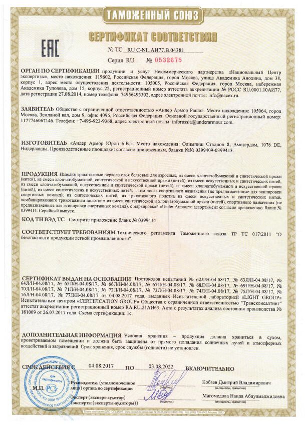 Мы предоставляем полный пакет сертификатов соответствия каждому нашему покупателю, а по истечению срока их действия предоставляем новые.